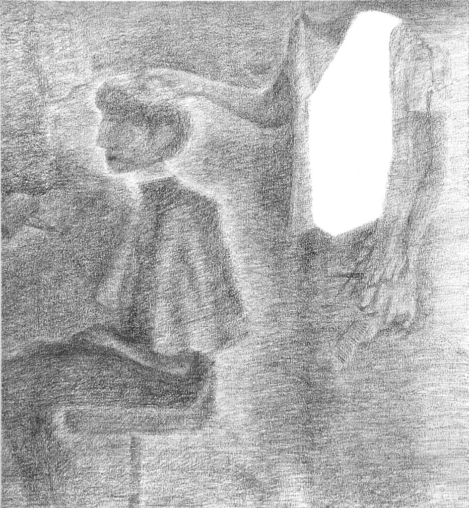 Left handed, 2020, charcoal on paper, 50×70 cm