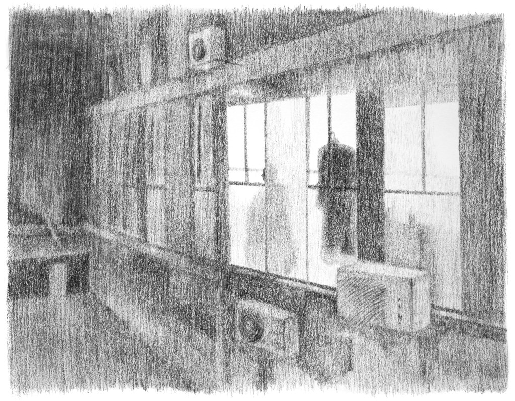 Sea, 2023, charcoal on paper, 117 x 190 cmHose, 2022, charcoal on paper, 53 x 67 cmPolar, 2022, charcoal on paper, 75 x 120 cmOn Watch, 2022, charcoal on paper, 110 x 120 cmPrinter, 2022, charcoal on paper, 110 x 86 cmThe Drive Back, 2022, charcoal on paper, 103 x 181 cmThe Hard Problem, 2021, charcoal on paper, 133 x 95 cmInside the giant eye, 2021, charcoal on paper, 80×90 cmCo-pilots, 2021, charcoal on paper, 90×140 cmSunburnt or Moonstruck?, 2020, charcoal on Paper, 88×66 cmMissing, 2020, charcoal on paper, 30×30 cmTime Travellers, 2020, charcoal on paper, 70×52 cmIncoming, 2021, charcoal on paper, 42×60 cmLucid dreaming (Brecht theatre), 2021, charcoal on paper, 80×90 cm